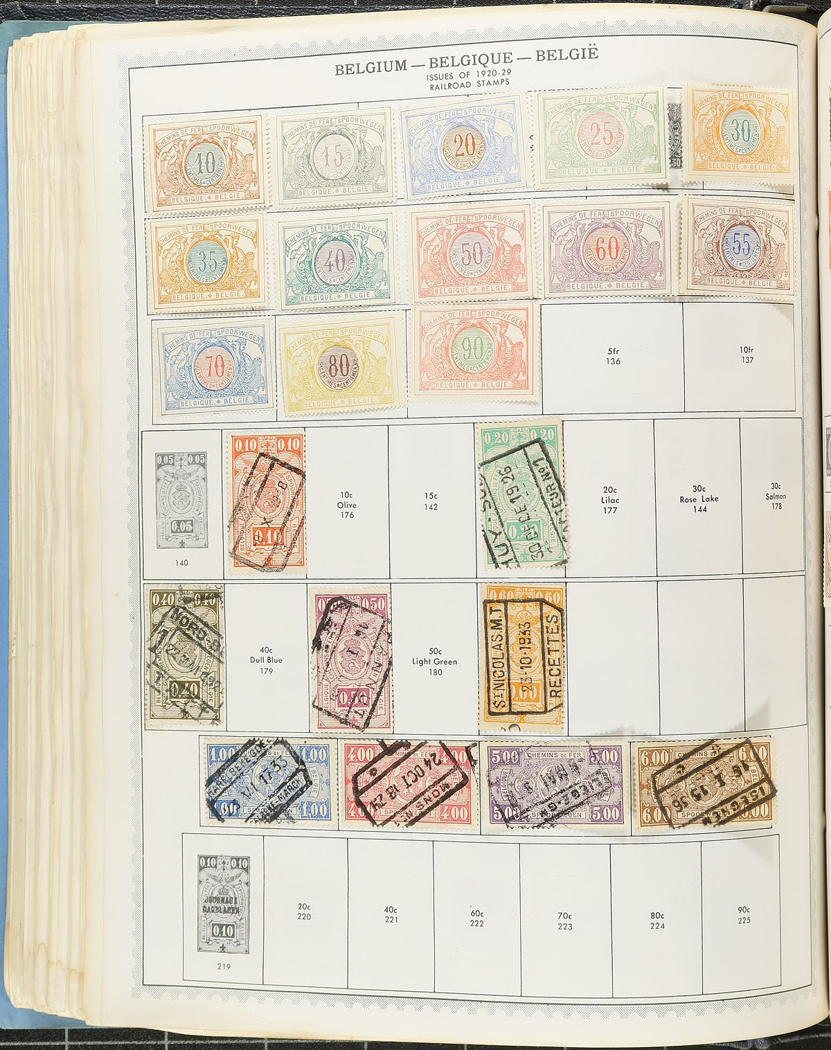 Massive worldwide collection in an overwhelming Minkus Master Global Album and a Harris Senior Statesman Album, 1860's-1970's. The albums most likely contain 20,000 primarily used stamps, covering countries from A to Z, with better representation from European countries, namely France and Colonies, Austria, Germany and States, Belgium, and much more, China, United States, India and States, British Commonwealth areas, and so much more, including back of the book issues for some countries (railway stamps, newspaper stamps, occupations, etc.). The bulk of the value is in the Minkus album, as the stamps range from the 1860's to the early 1960's, with the Statesman album covers years from the 1960's to the 1970's, with a spot check indicating singles and sets cataloguing $10 and up. Postmark interest includes cds, numeral, and other types, noting several "socked on the nose" town cancels. An ideal lot for the worldwide collector, with online photos showing a sampling, overall fine to very fine. Offered as received, one collector's lifetime holding. Estimate =