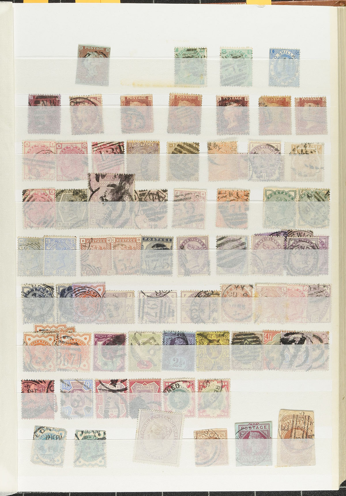 Collection of used Great Britain in a 64 page stockbook, 1840's-1980's, containing a few thousand stamps, generally ranging from Scott #3/1634, along with selections of "back of the book", Channel Islands, and a few hundred used Botswana issues. A spot check indicated roughly 70 Victorian issues, noting Scott #s 3, 43 (plate 14), 49 (plate 5), 54 (x2), 55, 59, 61 (plate 20 x2), along with a few higher denomination Edwards, a few Seahorses, and more, noting a few stamps cataloguing $20 and up. A nice start to a Great Britain collection, a few small faults with a few of the early stamps, overall fine to very fine. Estimate =