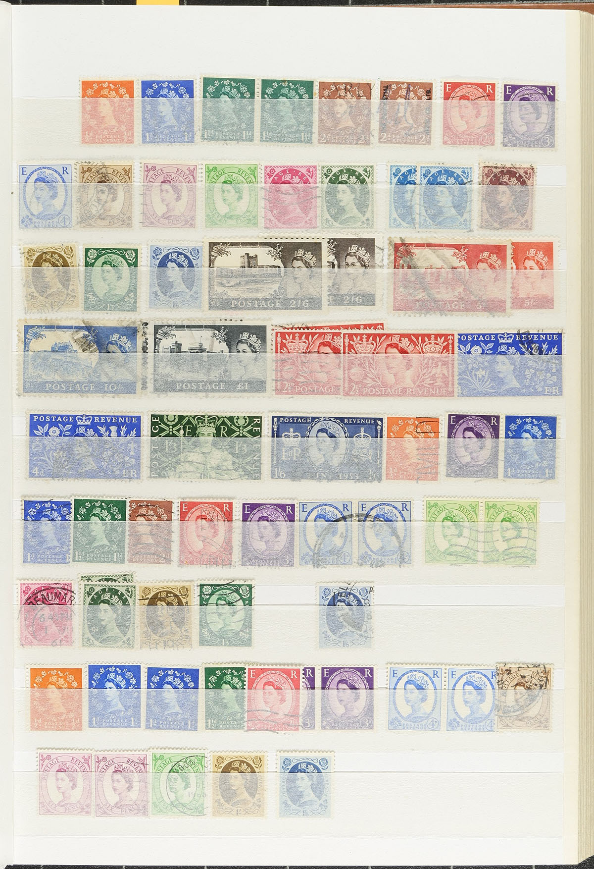 Collection of used Great Britain in a 64 page stockbook, 1840's-1980's, containing a few thousand stamps, generally ranging from Scott #3/1634, along with selections of "back of the book", Channel Islands, and a few hundred used Botswana issues. A spot check indicated roughly 70 Victorian issues, noting Scott #s 3, 43 (plate 14), 49 (plate 5), 54 (x2), 55, 59, 61 (plate 20 x2), along with a few higher denomination Edwards, a few Seahorses, and more, noting a few stamps cataloguing $20 and up. A nice start to a Great Britain collection, a few small faults with a few of the early stamps, overall fine to very fine. Estimate =