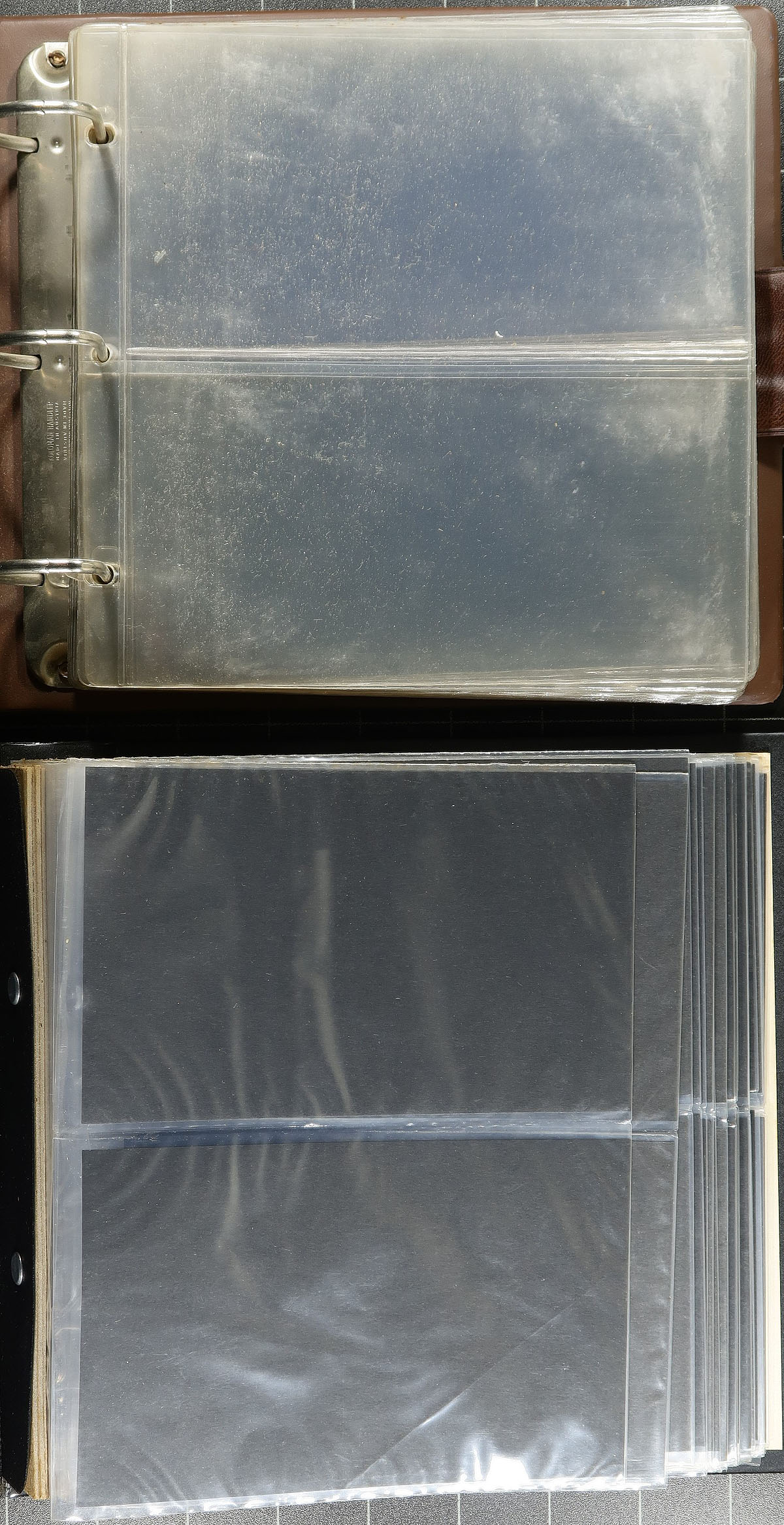 A nice group of 13 cover albums filling a bankers box, almost all are Lighthouse brand albums, with dual sided pages, ideal for #8 sized envelopes. Perfect for cover collectors or dealers, with albums in gently used condition, overall fine to very fine. Estimate =