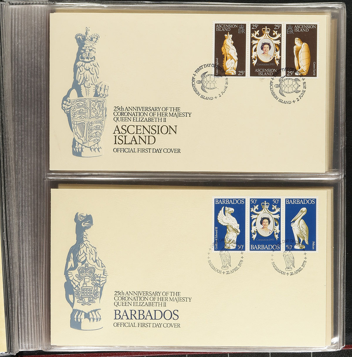 Group of 8 topical prepared collections filling a carton including an interesting "Limited Edition Collection of 1980 Olympic Miniature Sheets", "USA Legends of the West", "Stanley Gibbons Royal Wedding Stamp Album", "Proofcard Society of United States (Fleetwood)", "Golden Replicas of United States Stamps", and more. A nice lot of a few hundred covers and stamps, ideal for topical and thematic collectors. Estimate =