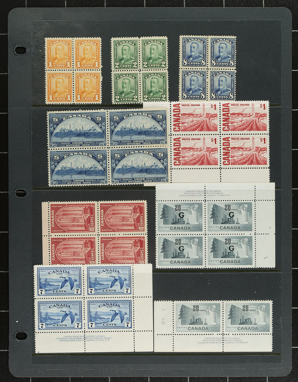 Nice accumulation of mint and used Canada, 1870's-1990's, containing several hundreds of stamps in two stockbooks and several loose stock pages. The lot contains a wide variety of items, generally ranging from Scott #34/1615, noting roughly 75 used Small Queens (including 5c (x16)), along with some useful mint material including Scott #s 149-150, 154 blocks of 4 (2mh, 2nh, c.v. $130 total), 178, 180, 182 coil pairs (mh, $67 total), 241 block of 4 (nh, $66), C1-C4 (nh, $224 total), along with used coil singles and pairs, singles, sets, and partial sets (noting a 50c Bluenose), and other items cataloguing $10 and up each. An interesting lot with suitable finds along with accumulations of Elizabethan issues, ideal for the Canada collector, overall fine to very fine. Estimate =