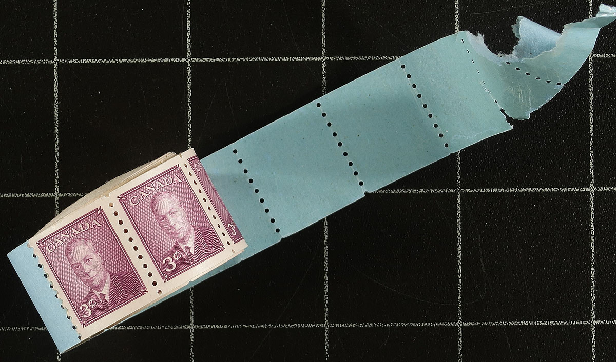 Intact (without partial start strip, but including the end tabs) F/VF mint NH roll of 500 of the 1949 George VI "Postes/Postage" 3c rose violet. The roll is unchecked for paste-up pairs and certainly includes jump strips. A cursory inspection of the first few dozen stamps in the roll showed them to be of very nice quality. The perfect complimentary lot to the War Issue coil roll offered in this sale. Valued by basic Scott catalogue as 500 NH singles. 2025 Scott US$550.00 =