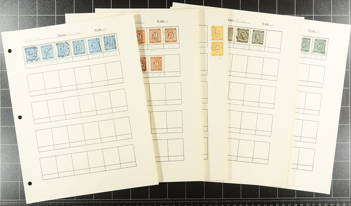 A post-war trio of specialist and more recent issues. A 32-page stockbook is crammed with "Allied Military Government" mint and used issues which someone has started a very specialized study of printing and perforation differences. This is followed by a three-ring binder that has a similar offering of 1946 issues (and more AMG material), again with the start of a deep dive into Michel. The final binder is a mostly used and very modern holding, primarily of regular issues and semi-postals (Scott numbers #1994/3252 & #B3/B1175), with issues up to 2021, giving you the opportunity to fill in many of the postally used issues from the past 20 years. Enormous catalogue value here. Estimate =