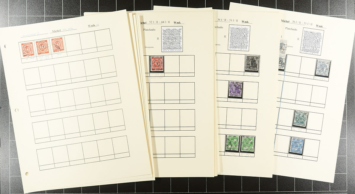 A post-war trio of specialist and more recent issues. A 32-page stockbook is crammed with "Allied Military Government" mint and used issues which someone has started a very specialized study of printing and perforation differences. This is followed by a three-ring binder that has a similar offering of 1946 issues (and more AMG material), again with the start of a deep dive into Michel. The final binder is a mostly used and very modern holding, primarily of regular issues and semi-postals (Scott numbers #1994/3252 & #B3/B1175), with issues up to 2021, giving you the opportunity to fill in many of the postally used issues from the past 20 years. Enormous catalogue value here. Estimate =