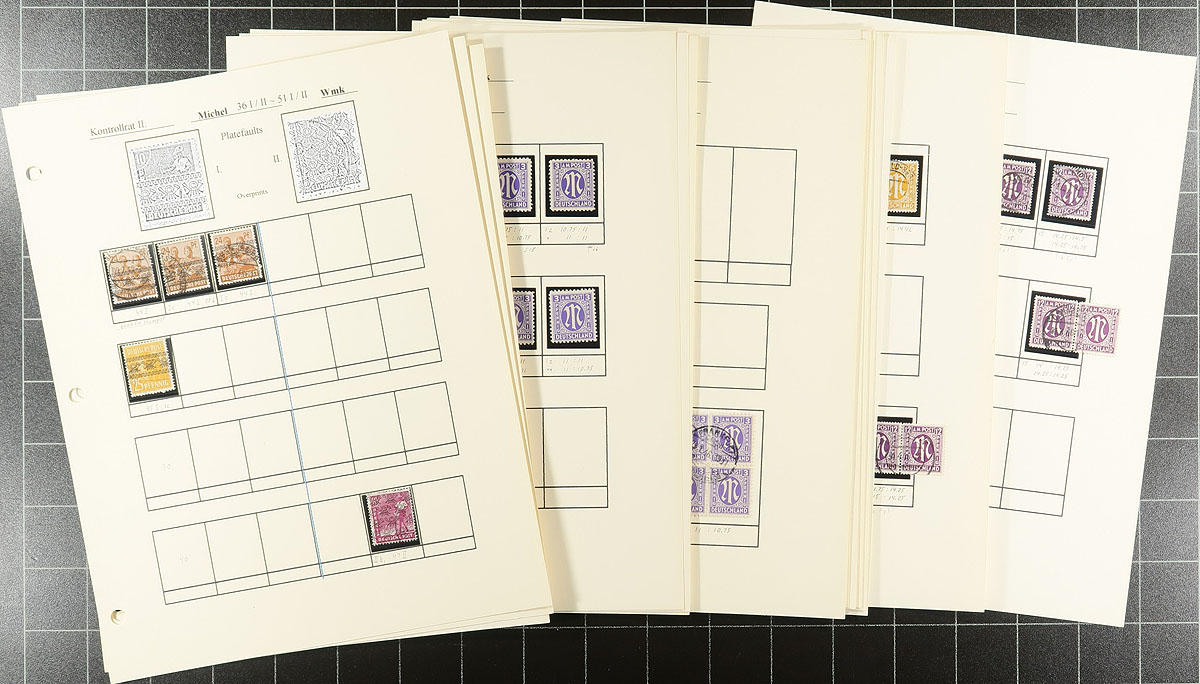 A post-war trio of specialist and more recent issues. A 32-page stockbook is crammed with "Allied Military Government" mint and used issues which someone has started a very specialized study of printing and perforation differences. This is followed by a three-ring binder that has a similar offering of 1946 issues (and more AMG material), again with the start of a deep dive into Michel. The final binder is a mostly used and very modern holding, primarily of regular issues and semi-postals (Scott numbers #1994/3252 & #B3/B1175), with issues up to 2021, giving you the opportunity to fill in many of the postally used issues from the past 20 years. Enormous catalogue value here. Estimate =