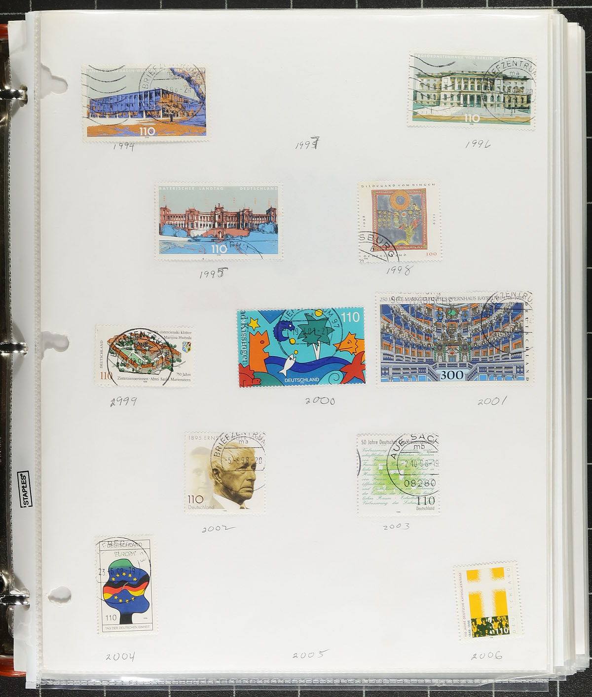 A post-war trio of specialist and more recent issues. A 32-page stockbook is crammed with "Allied Military Government" mint and used issues which someone has started a very specialized study of printing and perforation differences. This is followed by a three-ring binder that has a similar offering of 1946 issues (and more AMG material), again with the start of a deep dive into Michel. The final binder is a mostly used and very modern holding, primarily of regular issues and semi-postals (Scott numbers #1994/3252 & #B3/B1175), with issues up to 2021, giving you the opportunity to fill in many of the postally used issues from the past 20 years. Enormous catalogue value here. Estimate =