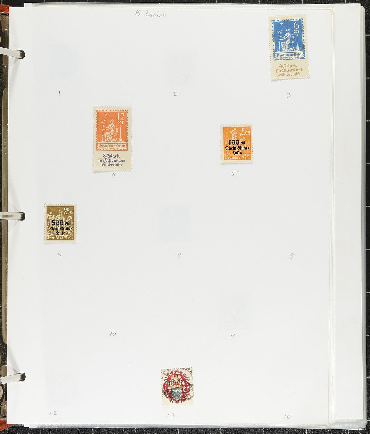 A post-war trio of specialist and more recent issues. A 32-page stockbook is crammed with "Allied Military Government" mint and used issues which someone has started a very specialized study of printing and perforation differences. This is followed by a three-ring binder that has a similar offering of 1946 issues (and more AMG material), again with the start of a deep dive into Michel. The final binder is a mostly used and very modern holding, primarily of regular issues and semi-postals (Scott numbers #1994/3252 & #B3/B1175), with issues up to 2021, giving you the opportunity to fill in many of the postally used issues from the past 20 years. Enormous catalogue value here. Estimate =