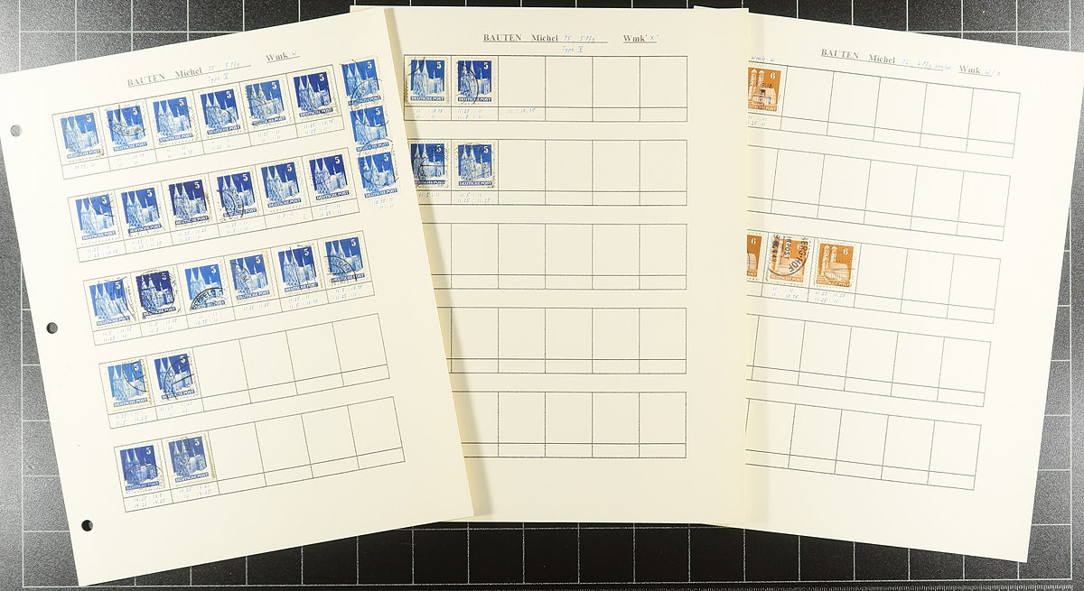 A post-war trio of specialist and more recent issues. A 32-page stockbook is crammed with "Allied Military Government" mint and used issues which someone has started a very specialized study of printing and perforation differences. This is followed by a three-ring binder that has a similar offering of 1946 issues (and more AMG material), again with the start of a deep dive into Michel. The final binder is a mostly used and very modern holding, primarily of regular issues and semi-postals (Scott numbers #1994/3252 & #B3/B1175), with issues up to 2021, giving you the opportunity to fill in many of the postally used issues from the past 20 years. Enormous catalogue value here. Estimate =