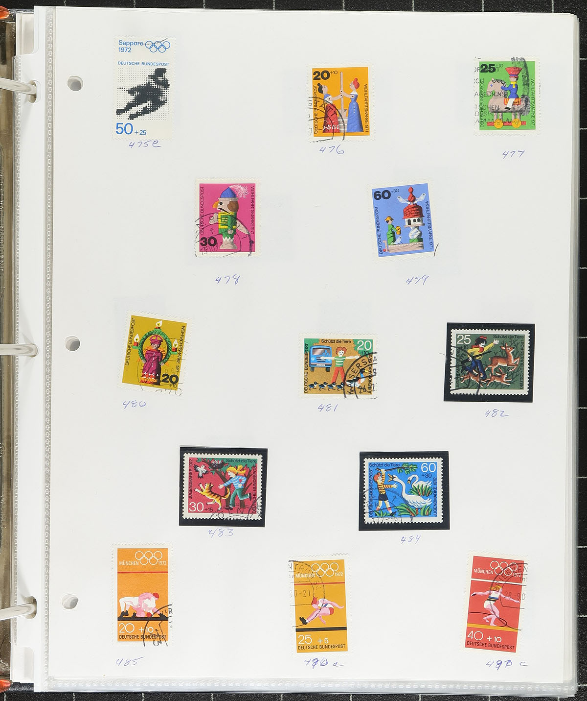A post-war trio of specialist and more recent issues. A 32-page stockbook is crammed with "Allied Military Government" mint and used issues which someone has started a very specialized study of printing and perforation differences. This is followed by a three-ring binder that has a similar offering of 1946 issues (and more AMG material), again with the start of a deep dive into Michel. The final binder is a mostly used and very modern holding, primarily of regular issues and semi-postals (Scott numbers #1994/3252 & #B3/B1175), with issues up to 2021, giving you the opportunity to fill in many of the postally used issues from the past 20 years. Enormous catalogue value here. Estimate =
