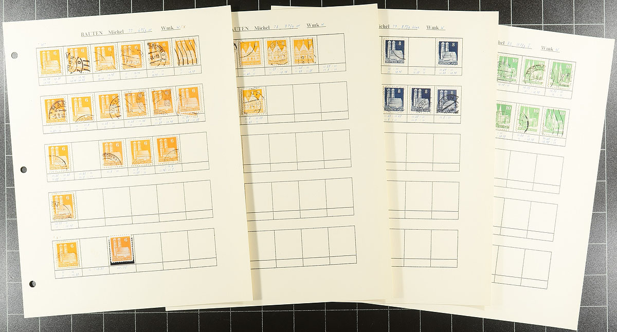 A post-war trio of specialist and more recent issues. A 32-page stockbook is crammed with "Allied Military Government" mint and used issues which someone has started a very specialized study of printing and perforation differences. This is followed by a three-ring binder that has a similar offering of 1946 issues (and more AMG material), again with the start of a deep dive into Michel. The final binder is a mostly used and very modern holding, primarily of regular issues and semi-postals (Scott numbers #1994/3252 & #B3/B1175), with issues up to 2021, giving you the opportunity to fill in many of the postally used issues from the past 20 years. Enormous catalogue value here. Estimate =