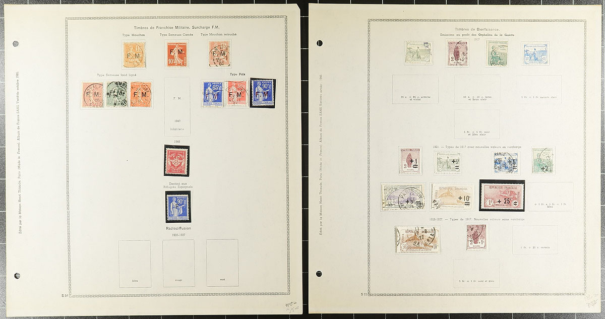 Mostly mint semi-postals, used postage dues and military overprints on Henri Thiaude album pages up to 1954. A very pleasing collection, with better stamps scattered throughout. Many are in black mounts. The semi-postals are quite complete for this run, including sets with up to $100.00 catalogue value (expect that the mint are Hinged). An outstanding collection or stock builder. The owner’s 2023 Scott US$1669.65 =