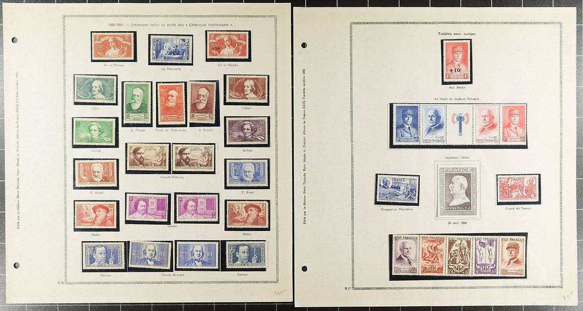 Mostly mint semi-postals, used postage dues and military overprints on Henri Thiaude album pages up to 1954. A very pleasing collection, with better stamps scattered throughout. Many are in black mounts. The semi-postals are quite complete for this run, including sets with up to $100.00 catalogue value (expect that the mint are Hinged). An outstanding collection or stock builder. The owner’s 2023 Scott US$1669.65 =