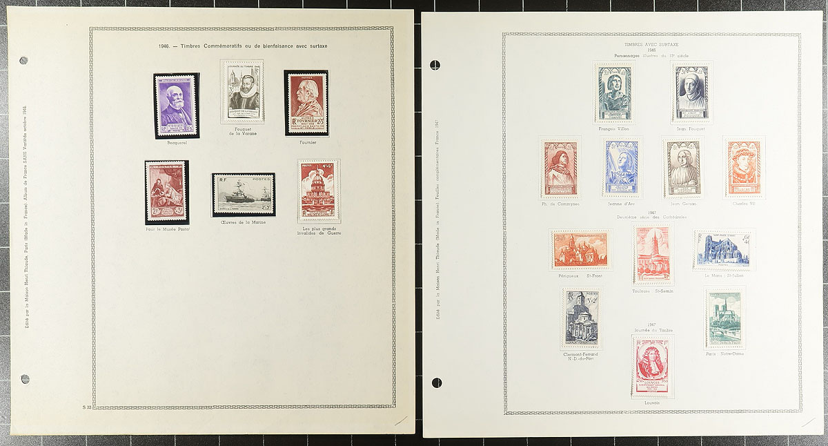 Mostly mint semi-postals, used postage dues and military overprints on Henri Thiaude album pages up to 1954. A very pleasing collection, with better stamps scattered throughout. Many are in black mounts. The semi-postals are quite complete for this run, including sets with up to $100.00 catalogue value (expect that the mint are Hinged). An outstanding collection or stock builder. The owner’s 2023 Scott US$1669.65 =