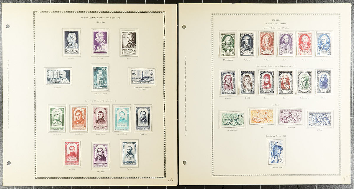 Mostly mint semi-postals, used postage dues and military overprints on Henri Thiaude album pages up to 1954. A very pleasing collection, with better stamps scattered throughout. Many are in black mounts. The semi-postals are quite complete for this run, including sets with up to $100.00 catalogue value (expect that the mint are Hinged). An outstanding collection or stock builder. The owner’s 2023 Scott US$1669.65 =