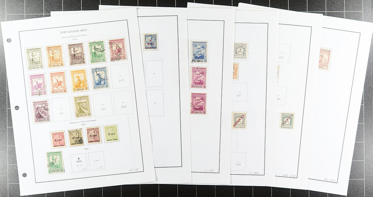 Semi-specialized collections from several colonies on computer generated pages (pre-Independence only). Cape Verde, Funchal, Horta, Inhambane, Lourenco Marques, Macau, Madeira, Mozambique Co. and Portuguese India. Most are 1870s to mid-20th century. A mix of mint and used, with some nice cancels. The collector had an appreciation of colour shades (not listed in Scott), of which there are many variants. Lots of common design material, some back of the book. A quick check indicates values to $10.00, but some better may be lurking. A couple of thousand stamps. Perfect for both beginner and specialist. Estimate =