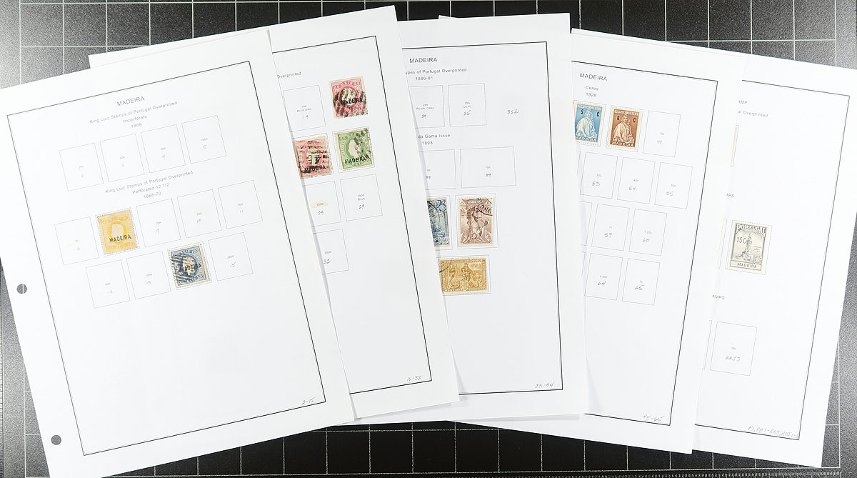 Semi-specialized collections from several colonies on computer generated pages (pre-Independence only). Cape Verde, Funchal, Horta, Inhambane, Lourenco Marques, Macau, Madeira, Mozambique Co. and Portuguese India. Most are 1870s to mid-20th century. A mix of mint and used, with some nice cancels. The collector had an appreciation of colour shades (not listed in Scott), of which there are many variants. Lots of common design material, some back of the book. A quick check indicates values to $10.00, but some better may be lurking. A couple of thousand stamps. Perfect for both beginner and specialist. Estimate =
