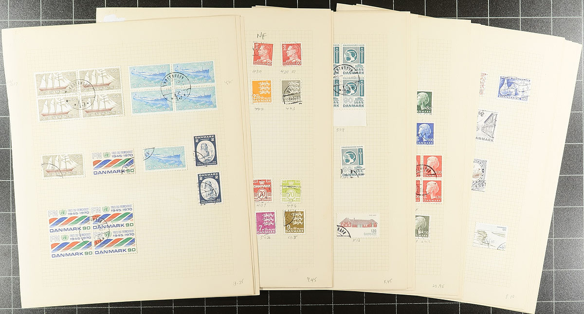 Three part holding of used, 20th century material, including some good back of the book. Starts with a used mounted collection of 1963-1988 with a nice selection of blocks of four. The second part is a small group of pages cut from stockbooks (1950-1990-ish) with lots of nice cancels here. The last group is a mounted collection of regular issues (1947-1975) and "back of the book" (best are the postage dues and officials) on quadrilled Lighthouse pages. Several hundred dollars of catalogue value here. Estimate =