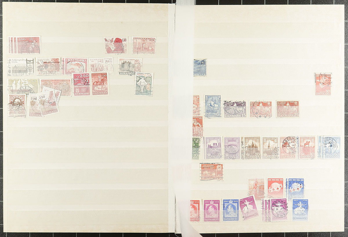 Three part holding of used, 20th century material, including some good back of the book. Starts with a used mounted collection of 1963-1988 with a nice selection of blocks of four. The second part is a small group of pages cut from stockbooks (1950-1990-ish) with lots of nice cancels here. The last group is a mounted collection of regular issues (1947-1975) and "back of the book" (best are the postage dues and officials) on quadrilled Lighthouse pages. Several hundred dollars of catalogue value here. Estimate =