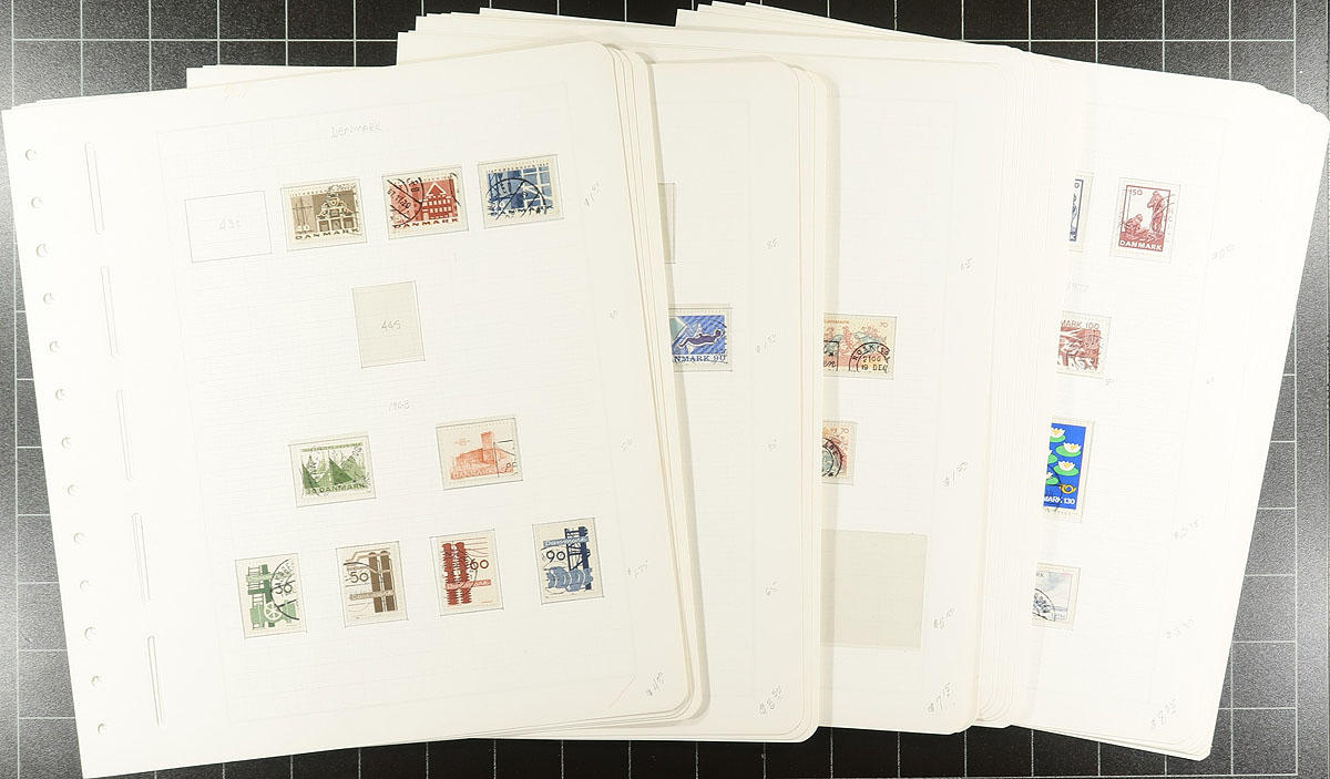 Three part holding of used, 20th century material, including some good back of the book. Starts with a used mounted collection of 1963-1988 with a nice selection of blocks of four. The second part is a small group of pages cut from stockbooks (1950-1990-ish) with lots of nice cancels here. The last group is a mounted collection of regular issues (1947-1975) and "back of the book" (best are the postage dues and officials) on quadrilled Lighthouse pages. Several hundred dollars of catalogue value here. Estimate =