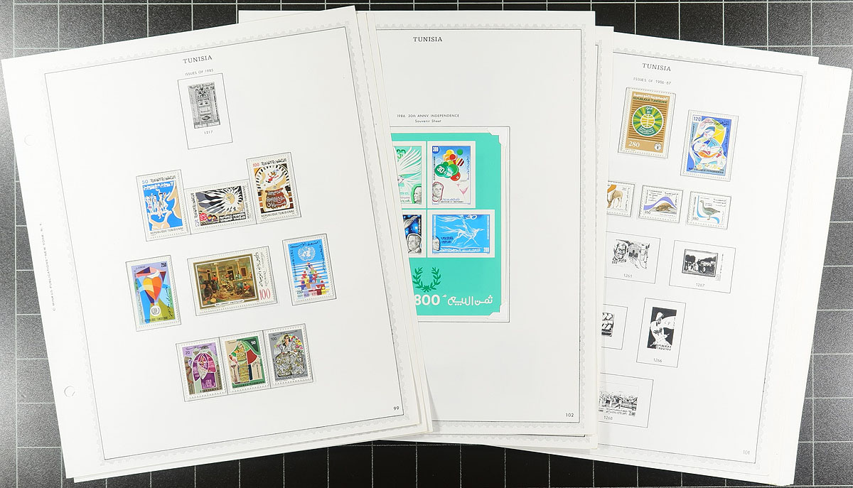 A clean, mounted collection with more mint than used, with stamps to 1986 on Minkus pages (to 1991). Starts with some nice earlier, and has a thorough run of mint from 1955-1986 in clear mounts, with some souvenir sheets and back of the book. Individual stamps and singles with catalogue values to $10.00. A perfect opportunity to take up a new country, a former French African colony. Estimate =