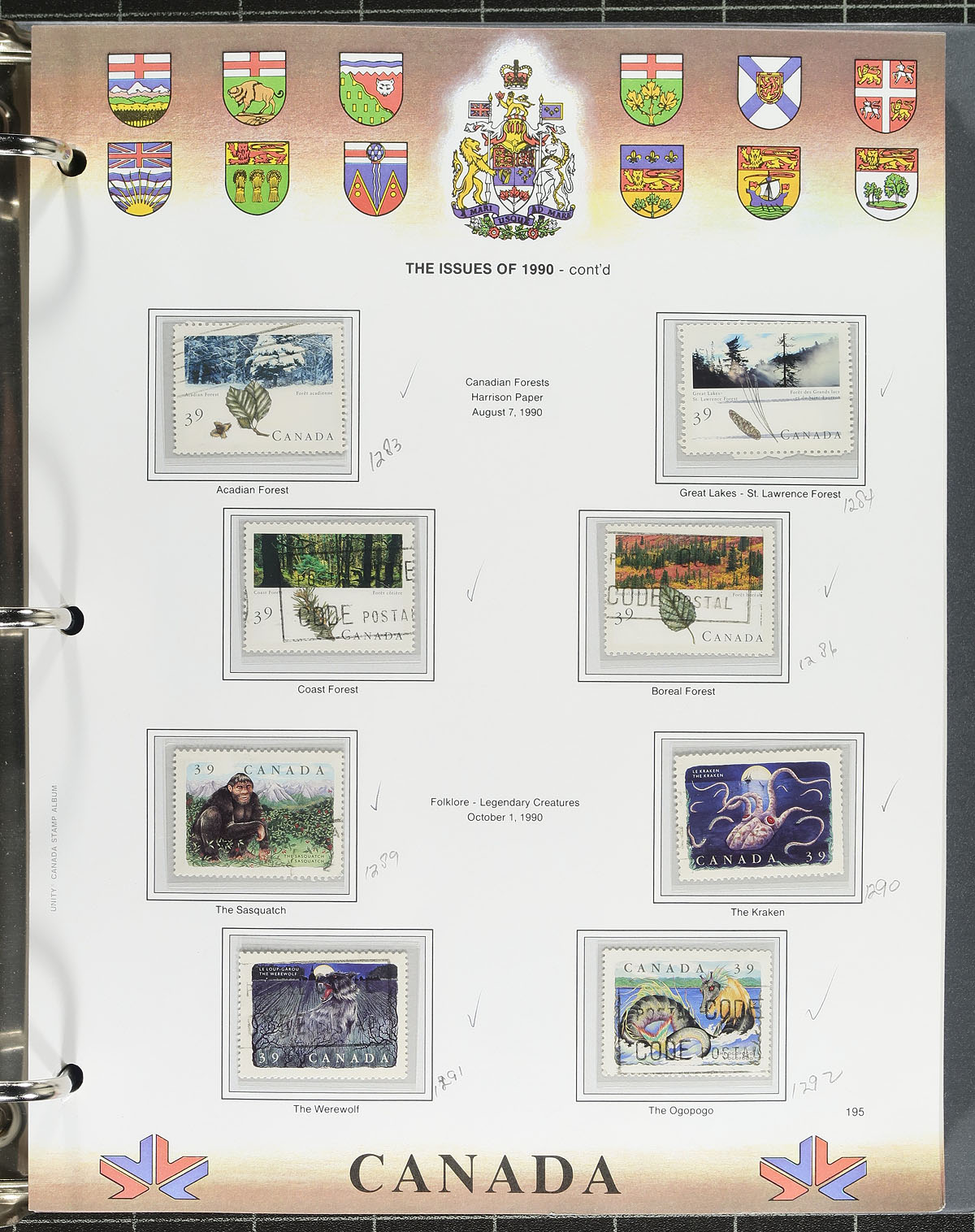 Very complete, used, collection of regular issues in three volumes, starting with a complete 1908 Quebec Tercentenary in 2011. Mostly complete KGV and KGVI sets including "Scroll" (with Bluenose), Arch, and the later dollar values. The Queen Elizabeth section is very complete, including many souvenir sheets (a few souvenir sheets are mint as "place holders"). The last few years are a bit sparser, the coils are generally singles and there are no booklets (but some booklet singles). Condition is generally good, with some nice cancels noted. You won’t need much to "complete" this century long collection. Estimate =
