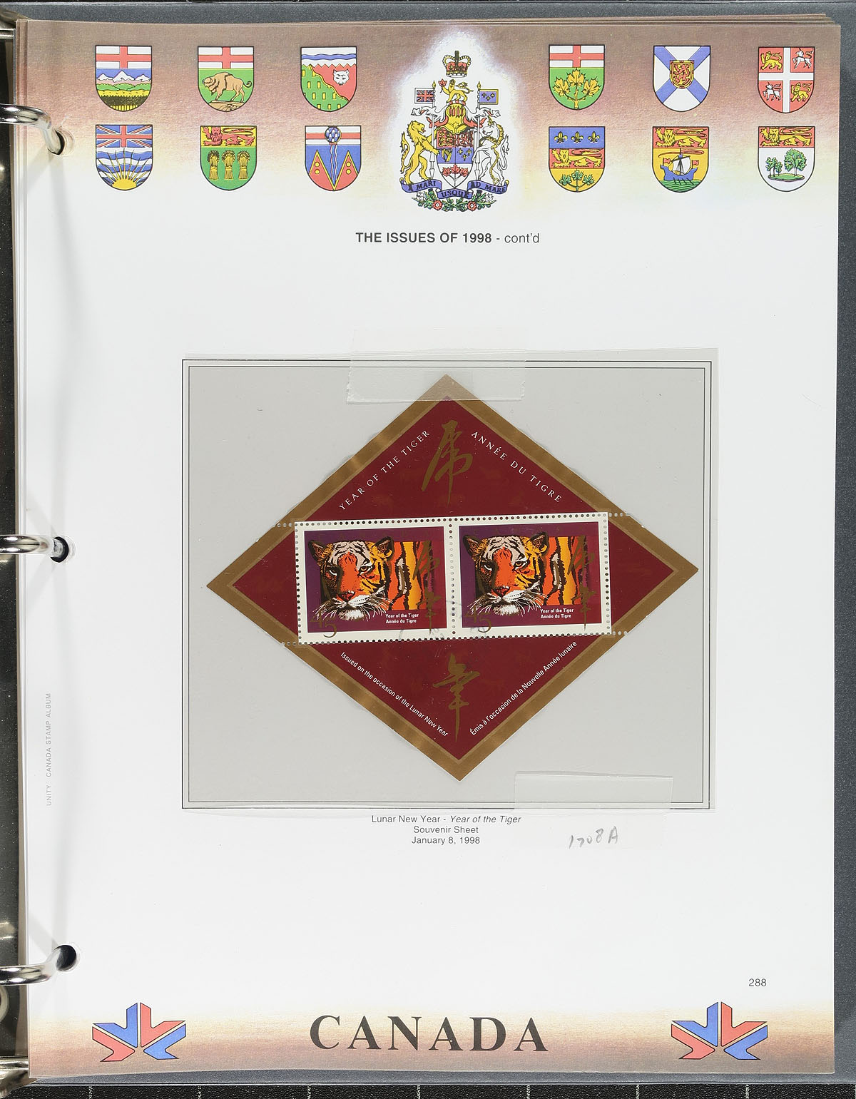 Very complete, used, collection of regular issues in three volumes, starting with a complete 1908 Quebec Tercentenary in 2011. Mostly complete KGV and KGVI sets including "Scroll" (with Bluenose), Arch, and the later dollar values. The Queen Elizabeth section is very complete, including many souvenir sheets (a few souvenir sheets are mint as "place holders"). The last few years are a bit sparser, the coils are generally singles and there are no booklets (but some booklet singles). Condition is generally good, with some nice cancels noted. You won’t need much to "complete" this century long collection. Estimate =
