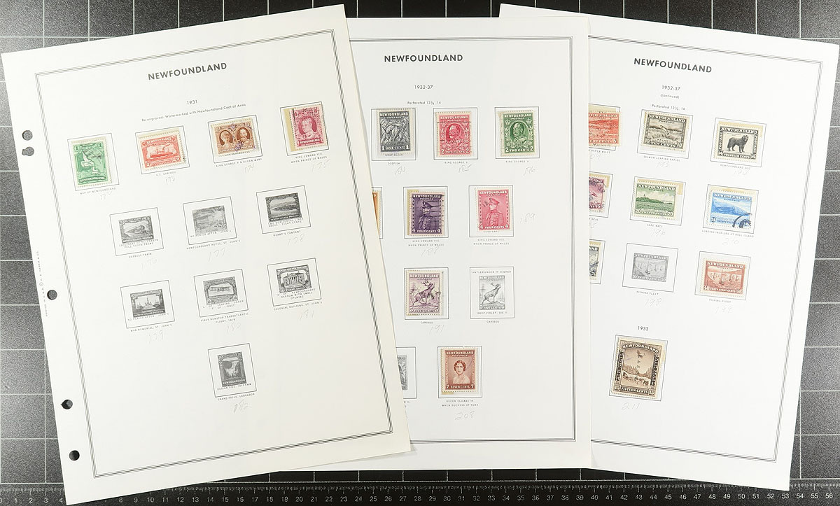 A used, and quite complete, collection of used "back of the book" Canada, plus a stamp or two from the three Maritime colonies, plus a collection of about 100 different Newfoundland stamps. Most are clean examples with respectable cancels. Includes all the Montreal Olympic semi-postals, and an example of each of the airmail and special delivery issues. The Registration trio is there, including the 8c #F3, and a basic offering of both purple and red postage dues. The Officials include a light offering of 4-hole OHMS, and a hit-or-miss group of "OHMS" and "G" overprints (did see the $ Peace and $ Fisheries with "G" overprints). Lots of catalogue value here. Estimate =