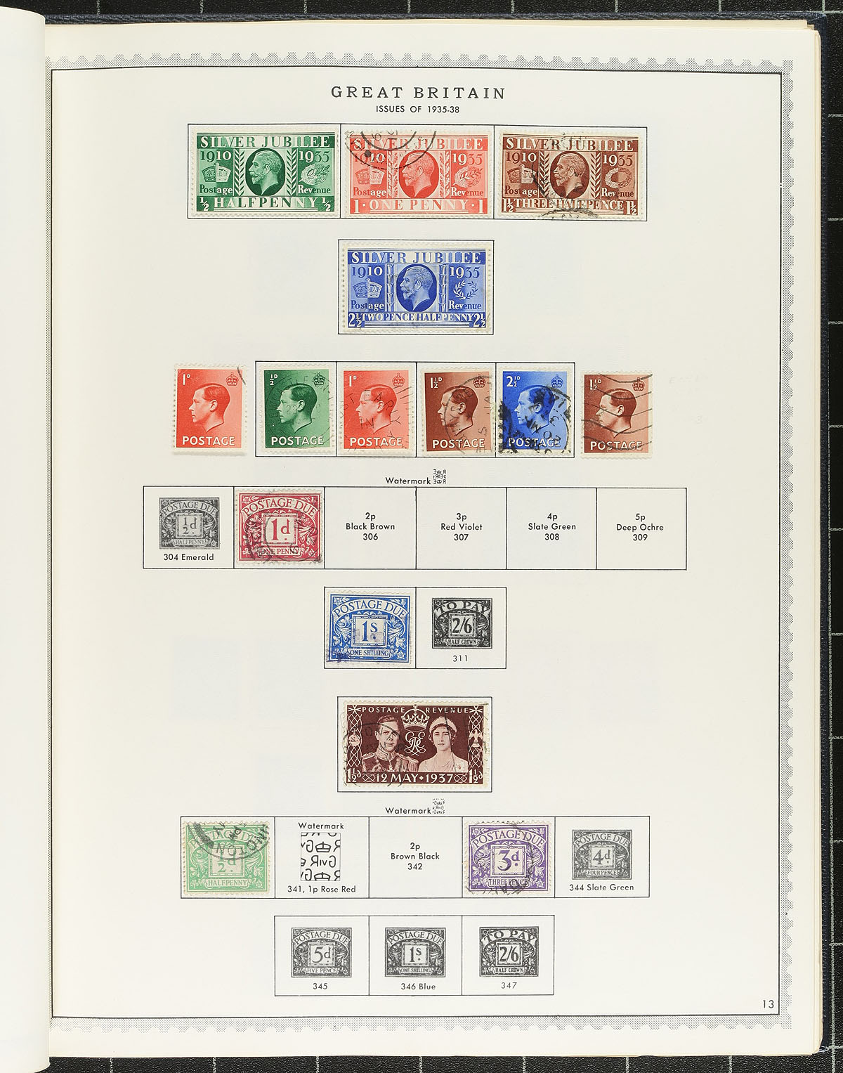 Circa 1973 Minkus "British Europe" album houses a nice, used, collection from several countries. The Great Britain has a good selection of Queen Victoria, with catalogue values to $275.00 and some beautiful cancels. The 5/- KEVII has a perfin and there is solid coverage through to the early 1970''s, with a bit of back of the book and Isles. Cyprus gets going in the King George VI era, but is hit-or-miss throughout, including a few souvenir sheets. Gibraltar is strongest in the 1960's-1970's. There are some overprints on GB stamps for use in the Levant. Malta is strongest from King George VI issues onward. Ireland is mostly 1941-1973 issues. Overall, there is lots of nice material throughout with pockets of better value material. Condition is better than normal. The album has minor wear and after a light clean should be good for another 50 years! Estimate =
