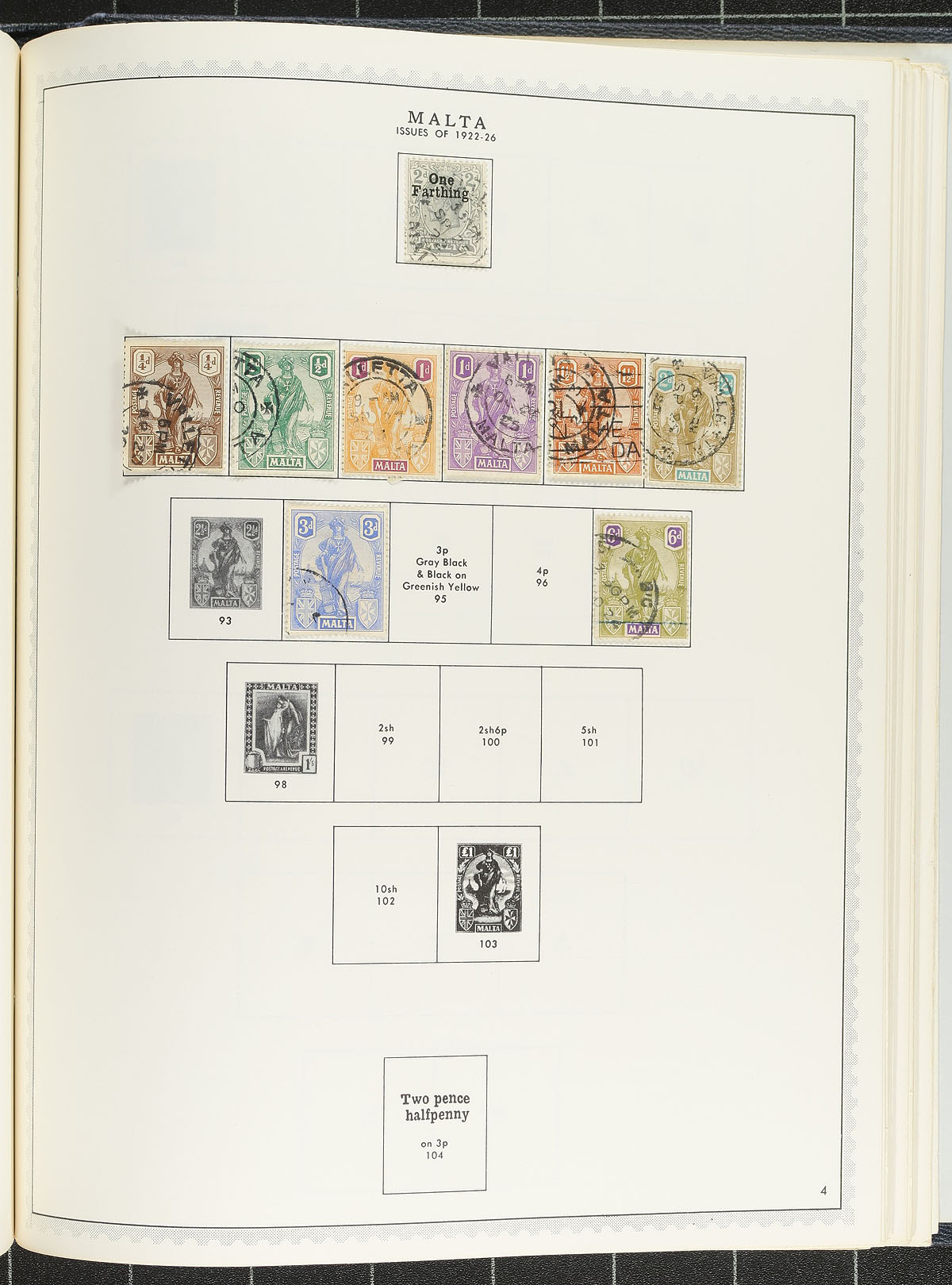 Circa 1973 Minkus "British Europe" album houses a nice, used, collection from several countries. The Great Britain has a good selection of Queen Victoria, with catalogue values to $275.00 and some beautiful cancels. The 5/- KEVII has a perfin and there is solid coverage through to the early 1970''s, with a bit of back of the book and Isles. Cyprus gets going in the King George VI era, but is hit-or-miss throughout, including a few souvenir sheets. Gibraltar is strongest in the 1960's-1970's. There are some overprints on GB stamps for use in the Levant. Malta is strongest from King George VI issues onward. Ireland is mostly 1941-1973 issues. Overall, there is lots of nice material throughout with pockets of better value material. Condition is better than normal. The album has minor wear and after a light clean should be good for another 50 years! Estimate =