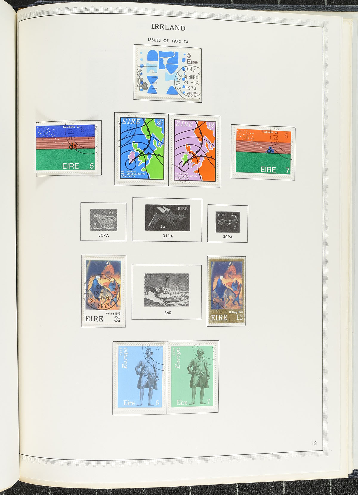 Circa 1973 Minkus "British Europe" album houses a nice, used, collection from several countries. The Great Britain has a good selection of Queen Victoria, with catalogue values to $275.00 and some beautiful cancels. The 5/- KEVII has a perfin and there is solid coverage through to the early 1970''s, with a bit of back of the book and Isles. Cyprus gets going in the King George VI era, but is hit-or-miss throughout, including a few souvenir sheets. Gibraltar is strongest in the 1960's-1970's. There are some overprints on GB stamps for use in the Levant. Malta is strongest from King George VI issues onward. Ireland is mostly 1941-1973 issues. Overall, there is lots of nice material throughout with pockets of better value material. Condition is better than normal. The album has minor wear and after a light clean should be good for another 50 years! Estimate =
