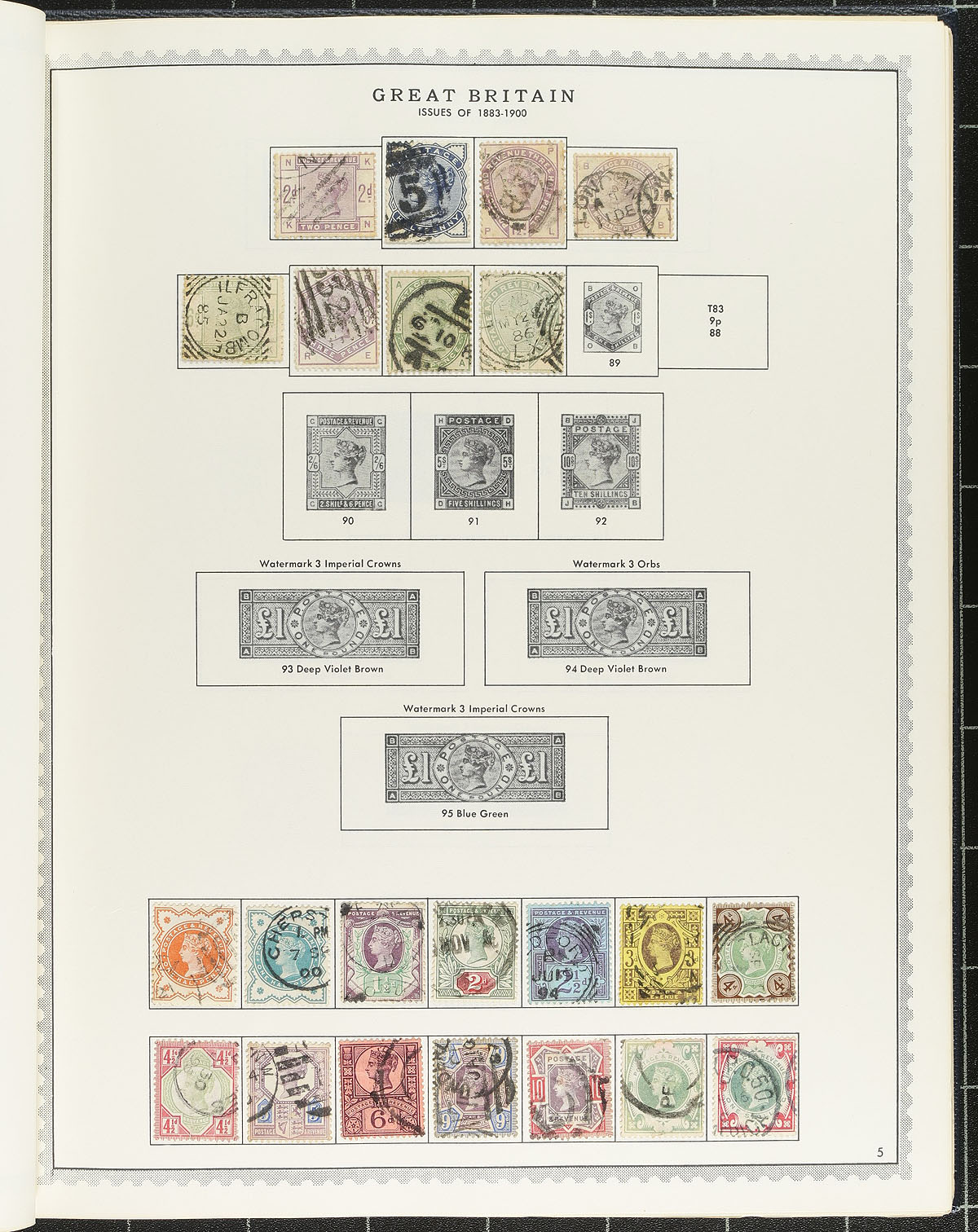 Circa 1973 Minkus "British Europe" album houses a nice, used, collection from several countries. The Great Britain has a good selection of Queen Victoria, with catalogue values to $275.00 and some beautiful cancels. The 5/- KEVII has a perfin and there is solid coverage through to the early 1970''s, with a bit of back of the book and Isles. Cyprus gets going in the King George VI era, but is hit-or-miss throughout, including a few souvenir sheets. Gibraltar is strongest in the 1960's-1970's. There are some overprints on GB stamps for use in the Levant. Malta is strongest from King George VI issues onward. Ireland is mostly 1941-1973 issues. Overall, there is lots of nice material throughout with pockets of better value material. Condition is better than normal. The album has minor wear and after a light clean should be good for another 50 years! Estimate =