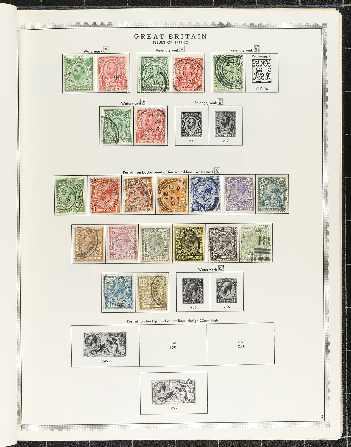 Circa 1973 Minkus "British Europe" album houses a nice, used, collection from several countries. The Great Britain has a good selection of Queen Victoria, with catalogue values to $275.00 and some beautiful cancels. The 5/- KEVII has a perfin and there is solid coverage through to the early 1970''s, with a bit of back of the book and Isles. Cyprus gets going in the King George VI era, but is hit-or-miss throughout, including a few souvenir sheets. Gibraltar is strongest in the 1960's-1970's. There are some overprints on GB stamps for use in the Levant. Malta is strongest from King George VI issues onward. Ireland is mostly 1941-1973 issues. Overall, there is lots of nice material throughout with pockets of better value material. Condition is better than normal. The album has minor wear and after a light clean should be good for another 50 years! Estimate =