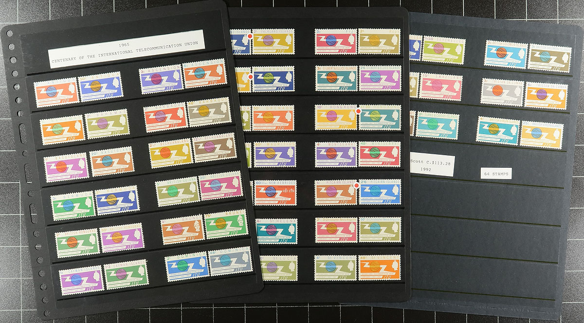 QEII-era "Omnibus" or "Common Design" issues covering the 1953 Coronation to the 1981 Royal Wedding, all mint, mostly lightly hinged on fifty "Hagner" black stock pages. Includes non-standard designs. Sets include Royal Visits, Freedom From Hunger, Red Cross, ITU, ICY, Churchill, World Cup, WHO and more weddings and anniversaries. The black pages retail for over $150.00 and are near new. A bonus is an old "Alligator" stockbook with a selection of 1948 Silver Wedding low values from singles to blocks of 8, most with selvedge, often with plate numbers (this last group not counted in the catalogue value). 2024 Scott US$1258.45 =