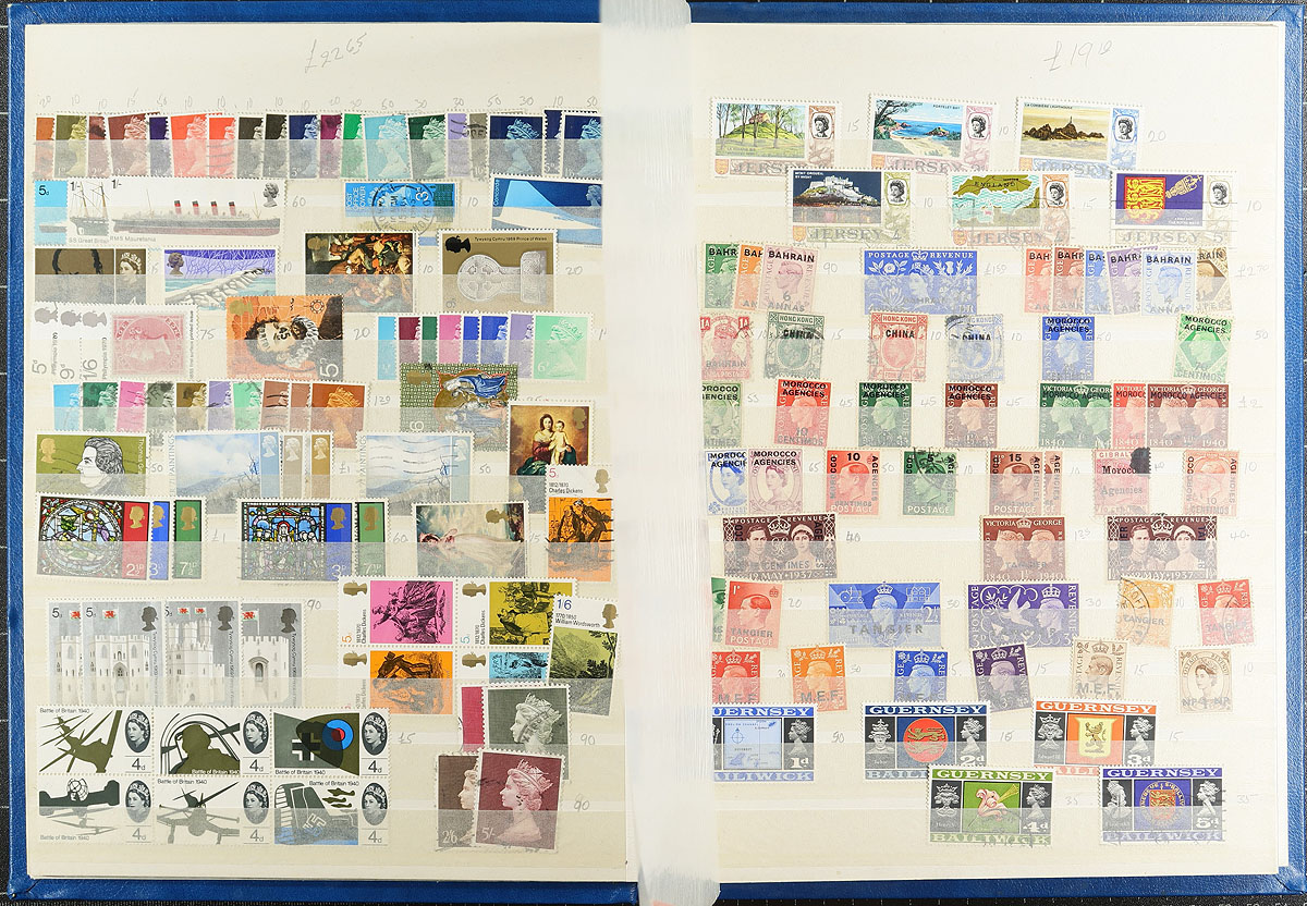 Great Britain, Canada and assorted colonies in a 16-page Uni-Safe stockbook and a binder with a group of souvenir sheets. The best is the QV and KEVII Great Britain, but there is a mix of mostly used material from "the Empire" including items issued into the 1990's. Appears to have been one collector’s duplicates. Many nice cancels and better stamps throughout. A conservative valuation would be US$3000.00 in catalogue value. The perfect lot for any keen collector or dealer, with lots of easily recognizable value. Estimate =
