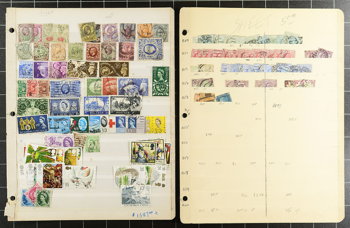 Great Britain, Canada and assorted colonies in a 16-page Uni-Safe stockbook and a binder with a group of souvenir sheets. The best is the QV and KEVII Great Britain, but there is a mix of mostly used material from "the Empire" including items issued into the 1990's. Appears to have been one collector’s duplicates. Many nice cancels and better stamps throughout. A conservative valuation would be US$3000.00 in catalogue value. The perfect lot for any keen collector or dealer, with lots of easily recognizable value. Estimate =