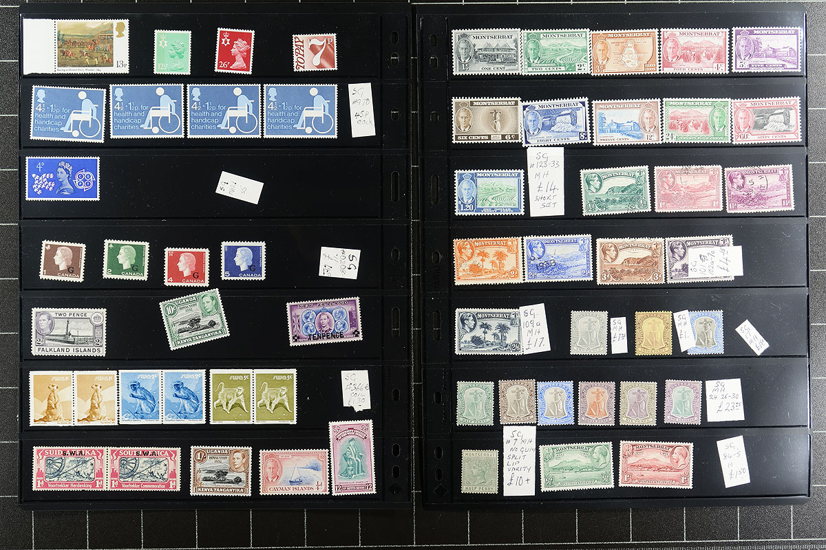Do you like "Classics" that come with chaos, yet shouldn’t take too much effort to re-establish order? If so, this British Colonial lot on 18 black stockpages is for you. In order of appearance: Trinidad, 1935 Silver Jubilee (16 sets, Hong Kong used, rest are mint), British Bechuanaland overprints, Antigua, Bahamas, St. Kitts & Nevis, Victoria (Australia State), plus a range of mostly Caribbean and Pacific Islands. Huge upside potential here, but expect some mixed condition and duplication. Estimate =