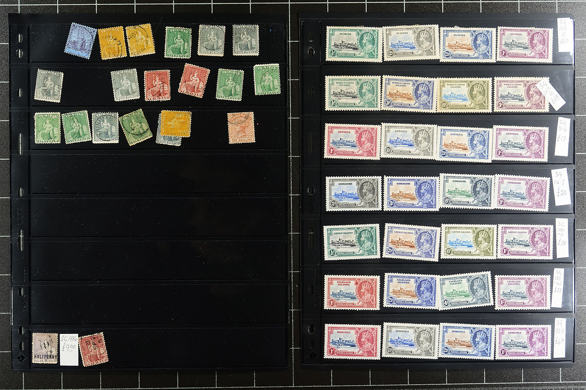 Do you like "Classics" that come with chaos, yet shouldn’t take too much effort to re-establish order? If so, this British Colonial lot on 18 black stockpages is for you. In order of appearance: Trinidad, 1935 Silver Jubilee (16 sets, Hong Kong used, rest are mint), British Bechuanaland overprints, Antigua, Bahamas, St. Kitts & Nevis, Victoria (Australia State), plus a range of mostly Caribbean and Pacific Islands. Huge upside potential here, but expect some mixed condition and duplication. Estimate =