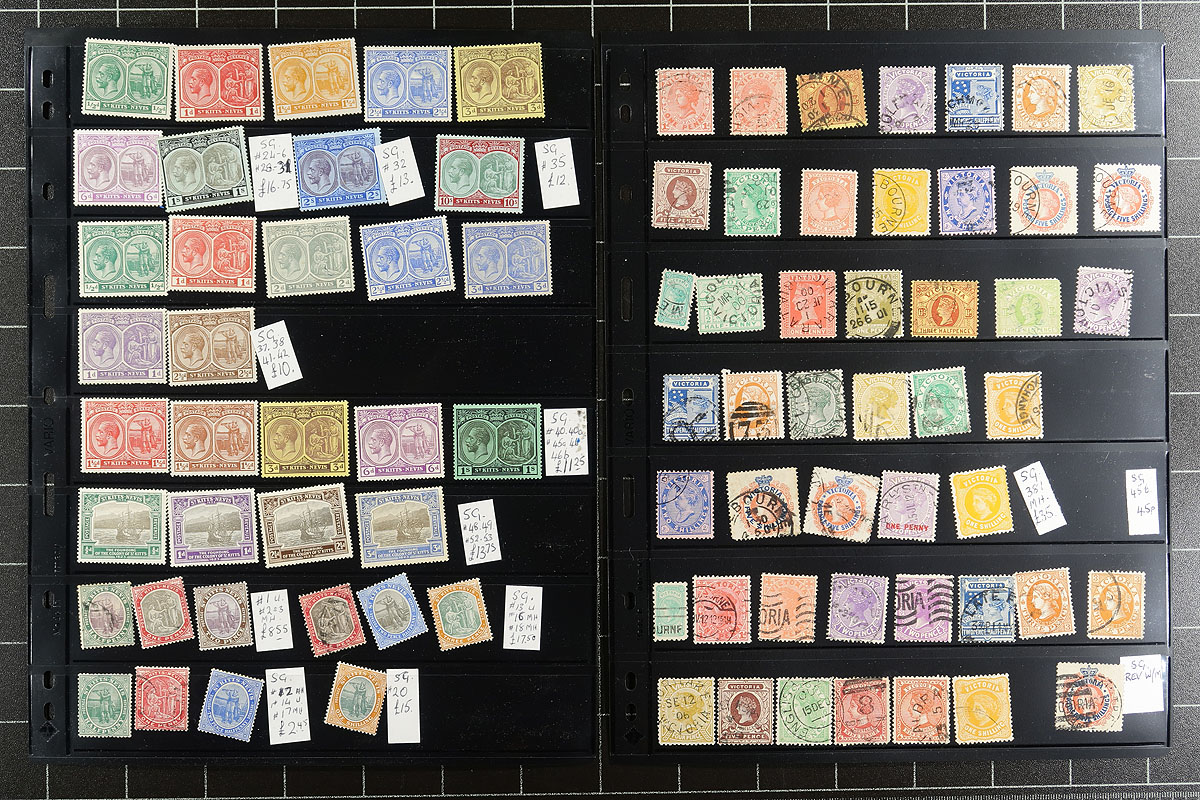 Do you like "Classics" that come with chaos, yet shouldn’t take too much effort to re-establish order? If so, this British Colonial lot on 18 black stockpages is for you. In order of appearance: Trinidad, 1935 Silver Jubilee (16 sets, Hong Kong used, rest are mint), British Bechuanaland overprints, Antigua, Bahamas, St. Kitts & Nevis, Victoria (Australia State), plus a range of mostly Caribbean and Pacific Islands. Huge upside potential here, but expect some mixed condition and duplication. Estimate =