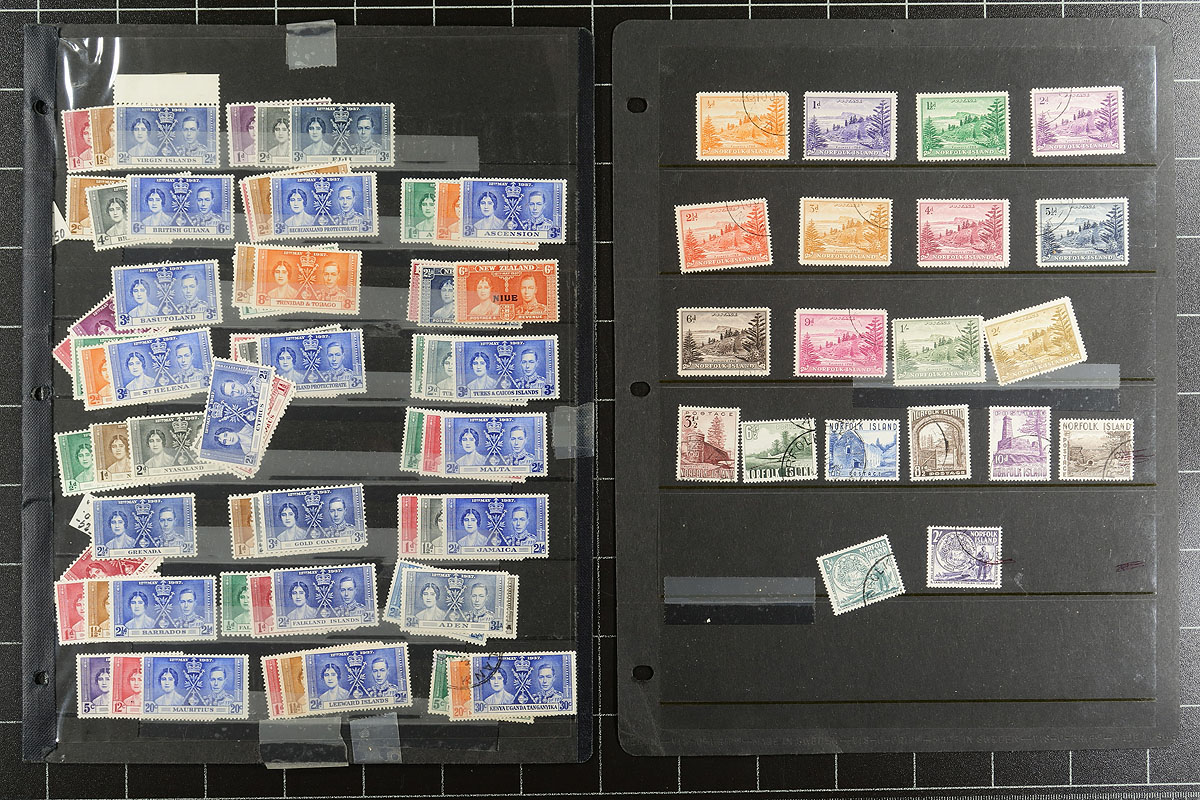 Do you like "Classics" that come with chaos, yet shouldn’t take too much effort to re-establish order? If so, this British Colonial lot on 18 black stockpages is for you. In order of appearance: Trinidad, 1935 Silver Jubilee (16 sets, Hong Kong used, rest are mint), British Bechuanaland overprints, Antigua, Bahamas, St. Kitts & Nevis, Victoria (Australia State), plus a range of mostly Caribbean and Pacific Islands. Huge upside potential here, but expect some mixed condition and duplication. Estimate =