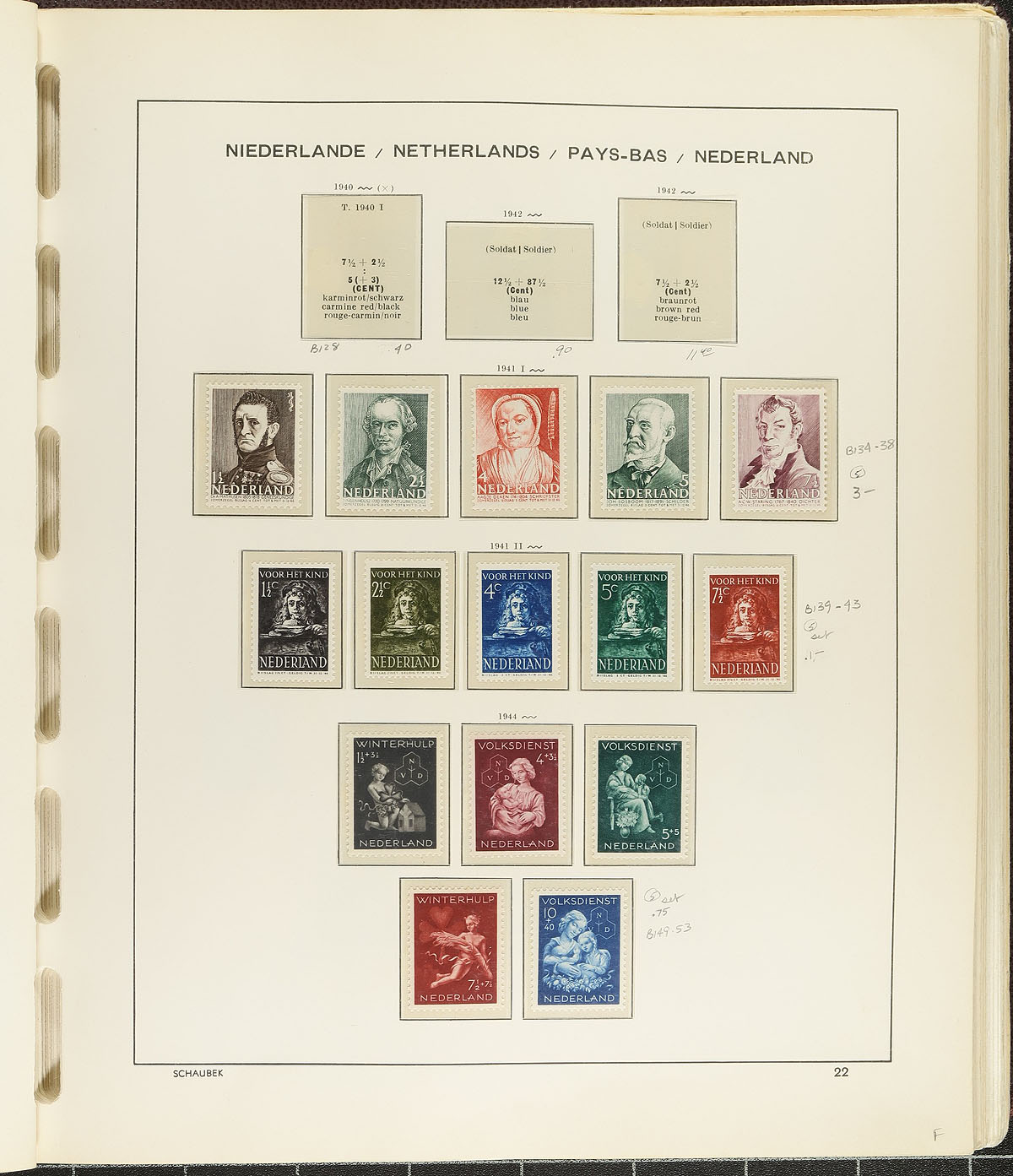 When this Schaubek album was last on the market, it was in a circa 1980 Weeda bidboard (with an owner’s catalogue value of $145.00!). Mostly used, with pages to 1976 and professional looking collector-added clear mounts, this mostly used collection includes a wide range of issues, including some "back of the book", with a number of nice cancels. Better mint #20 and #22 (heavily hinged, cat $475.00) and used #12 (cat $160.00) and #18. Someone attempted to re-catalogue this collection a few years ago and pointed out some faulty stamps. We are going to stick with an estimated value. Estimate =