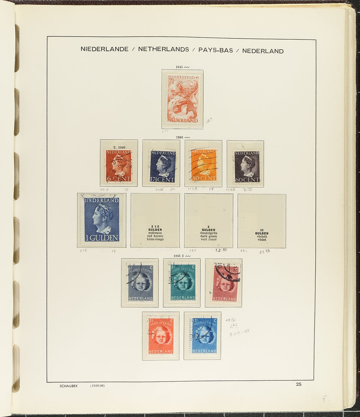 When this Schaubek album was last on the market, it was in a circa 1980 Weeda bidboard (with an owner’s catalogue value of $145.00!). Mostly used, with pages to 1976 and professional looking collector-added clear mounts, this mostly used collection includes a wide range of issues, including some "back of the book", with a number of nice cancels. Better mint #20 and #22 (heavily hinged, cat $475.00) and used #12 (cat $160.00) and #18. Someone attempted to re-catalogue this collection a few years ago and pointed out some faulty stamps. We are going to stick with an estimated value. Estimate =