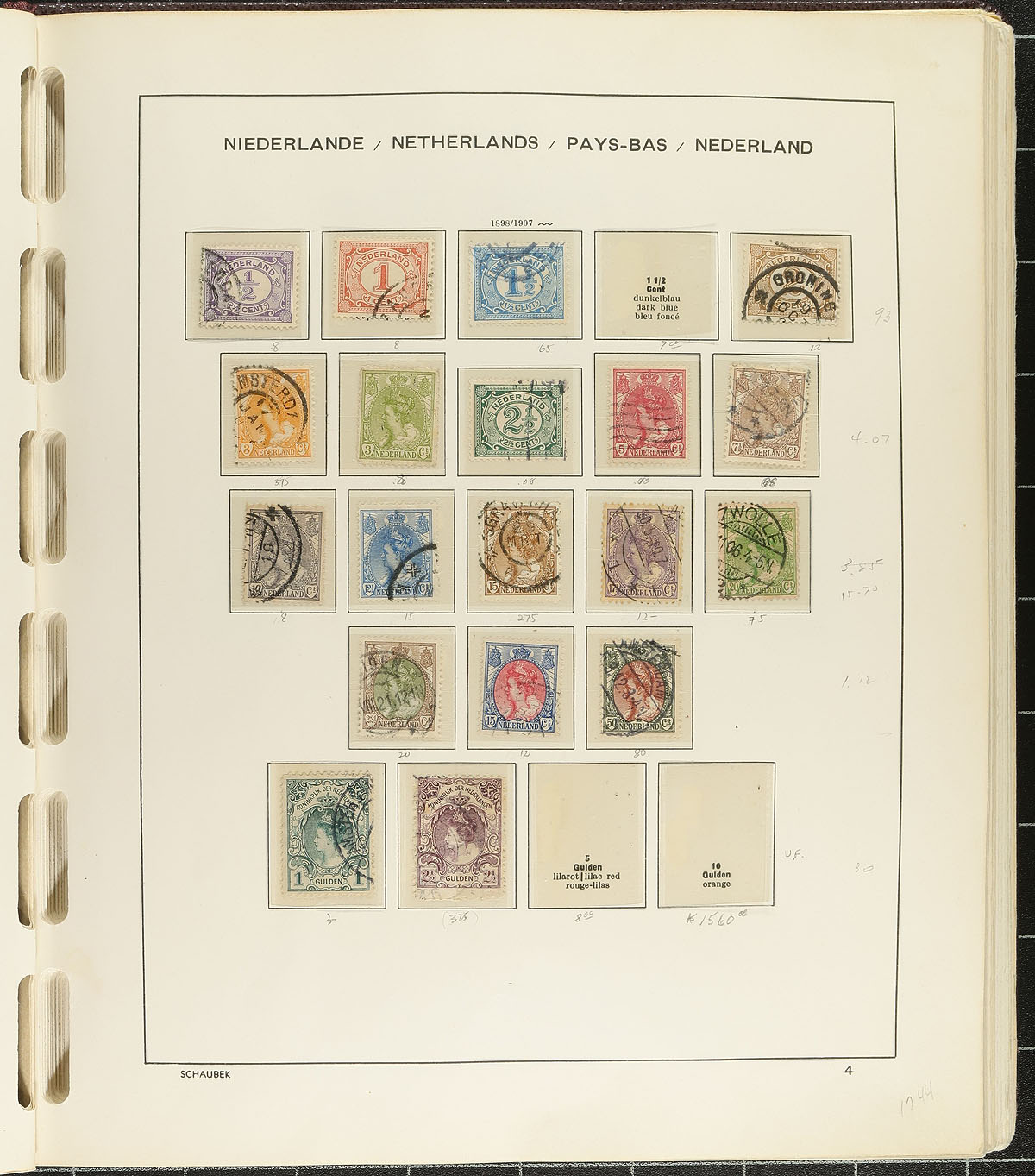 When this Schaubek album was last on the market, it was in a circa 1980 Weeda bidboard (with an owner’s catalogue value of $145.00!). Mostly used, with pages to 1976 and professional looking collector-added clear mounts, this mostly used collection includes a wide range of issues, including some "back of the book", with a number of nice cancels. Better mint #20 and #22 (heavily hinged, cat $475.00) and used #12 (cat $160.00) and #18. Someone attempted to re-catalogue this collection a few years ago and pointed out some faulty stamps. We are going to stick with an estimated value. Estimate =