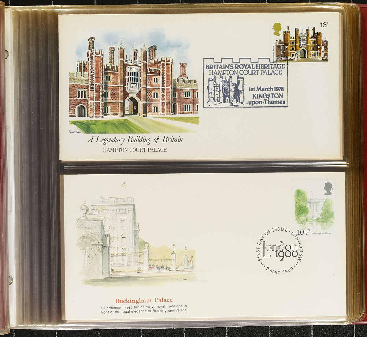 Not your usual British First Day Cover lot. From the 1940's to the 1990's, there is a mix of private and Royal Mail cachets. The Guernsey, Jersey and Isle of Man, are above average with Occupation and 1960's phosphor bands. Catching our eye is a group of 1960's first day covers, a book of 1982-1983 "Fleetwood" cachets and lots of late-century first day covers with outrageous original cost. About 300 FDCs. Perfect for the specialist to dive into. Estimate =