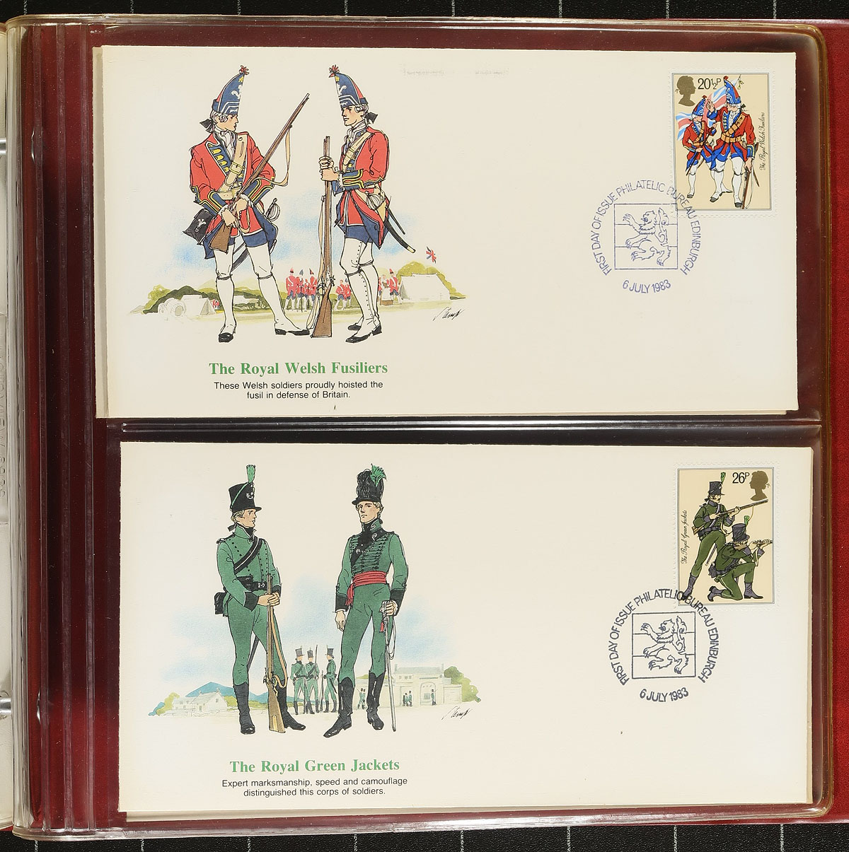 Not your usual British First Day Cover lot. From the 1940's to the 1990's, there is a mix of private and Royal Mail cachets. The Guernsey, Jersey and Isle of Man, are above average with Occupation and 1960's phosphor bands. Catching our eye is a group of 1960's first day covers, a book of 1982-1983 "Fleetwood" cachets and lots of late-century first day covers with outrageous original cost. About 300 FDCs. Perfect for the specialist to dive into. Estimate =