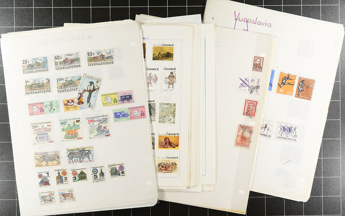 Philatelic lottery ticket lot. A bankers box, filled with the contents of a local estate. Part of it is a conventional "leftovers" box with some album pages, and two red boxes filled with near new "102" cards (each with stamps, heavy in Latin America, Hungary and Australia), the supplies value alone is about $100.00. What makes it a lottery is three smaller boxes filled with one person’s random purchases over a lifetime, heavy in the British Colonies, but with many other countries included. We noted lots of 1935 Silver Jubilees, some early GB and colonial material, with some optimistically identified, and others that will have you scrambling for your reference material. A few hundred items here, many are on black display cards. Diamonds in the rough, here? Estimate =
