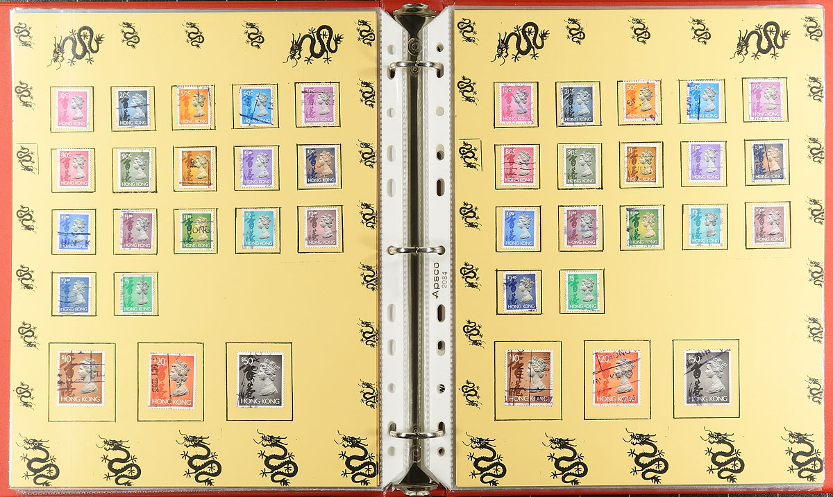 Hong Kong, China, even some Taiwan. A bit of a quirky lot, resulting from an estate. The majority of the volume is Hong Kong, with a number of mint presentation folders, and a handful of complete booklets both British and Chinese administration. The used includes a plastic case filled with #102 cards with used stamps going back to the 1960's. This collector may have been assembling QEII definitive sets for retail display, as there is a binder full of thin cards, each with one set (or partial set, as these were in progress) with anywhere from 1 to a couple dozen sets, plus some manila stockpages with "leftover" or future material (includes about 75 copies of $50.00 #651E, cat $10.00 each). There is a bit of PRC, including some display sets from the same collector. Early China and ROC are found in very small quantities, and there could be more that we missed. Estimate =