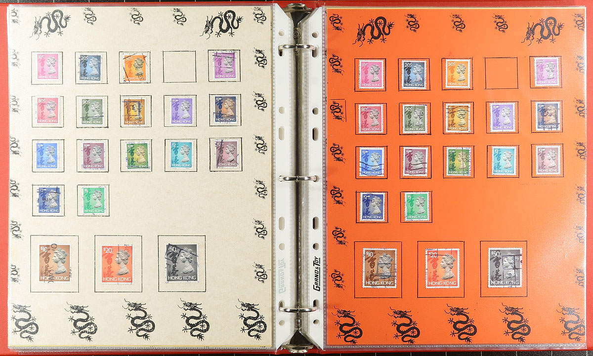 Hong Kong, China, even some Taiwan. A bit of a quirky lot, resulting from an estate. The majority of the volume is Hong Kong, with a number of mint presentation folders, and a handful of complete booklets both British and Chinese administration. The used includes a plastic case filled with #102 cards with used stamps going back to the 1960's. This collector may have been assembling QEII definitive sets for retail display, as there is a binder full of thin cards, each with one set (or partial set, as these were in progress) with anywhere from 1 to a couple dozen sets, plus some manila stockpages with "leftover" or future material (includes about 75 copies of $50.00 #651E, cat $10.00 each). There is a bit of PRC, including some display sets from the same collector. Early China and ROC are found in very small quantities, and there could be more that we missed. Estimate =