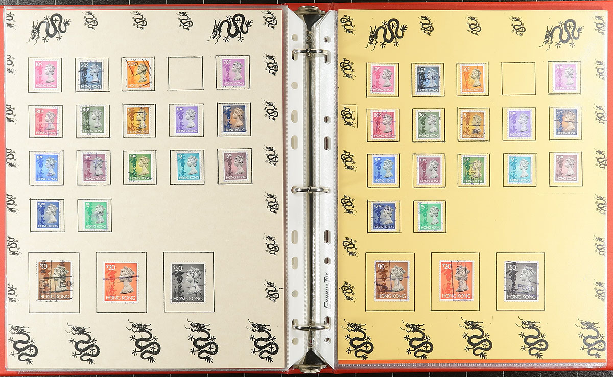 Hong Kong, China, even some Taiwan. A bit of a quirky lot, resulting from an estate. The majority of the volume is Hong Kong, with a number of mint presentation folders, and a handful of complete booklets both British and Chinese administration. The used includes a plastic case filled with #102 cards with used stamps going back to the 1960's. This collector may have been assembling QEII definitive sets for retail display, as there is a binder full of thin cards, each with one set (or partial set, as these were in progress) with anywhere from 1 to a couple dozen sets, plus some manila stockpages with "leftover" or future material (includes about 75 copies of $50.00 #651E, cat $10.00 each). There is a bit of PRC, including some display sets from the same collector. Early China and ROC are found in very small quantities, and there could be more that we missed. Estimate =