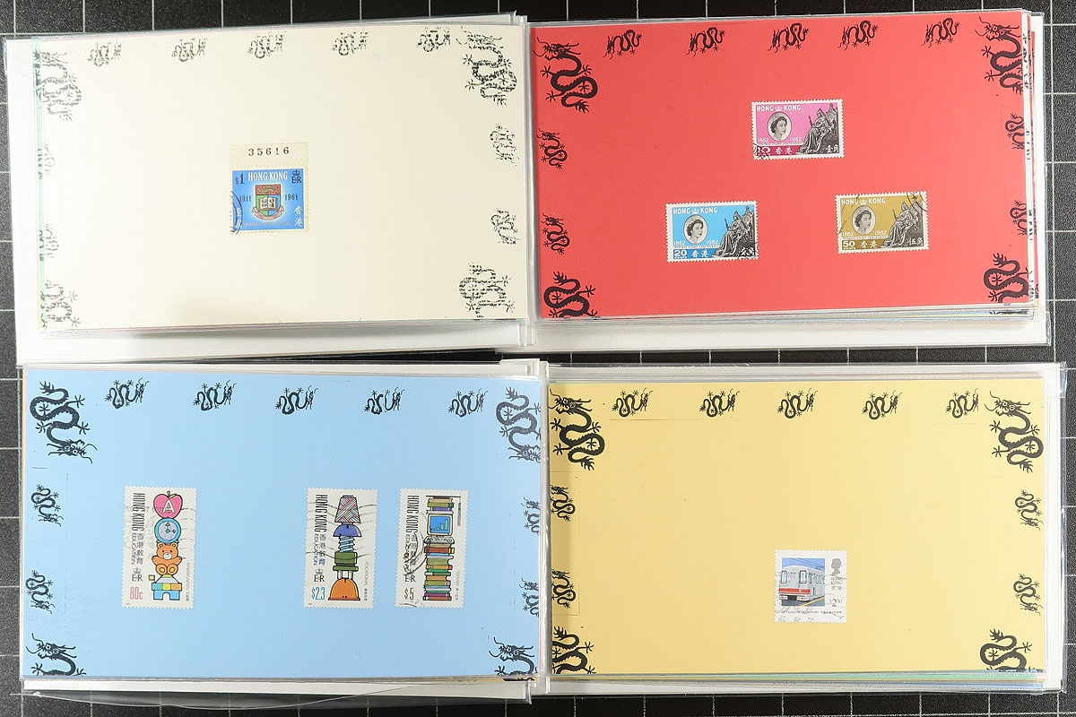 Hong Kong, China, even some Taiwan. A bit of a quirky lot, resulting from an estate. The majority of the volume is Hong Kong, with a number of mint presentation folders, and a handful of complete booklets both British and Chinese administration. The used includes a plastic case filled with #102 cards with used stamps going back to the 1960's. This collector may have been assembling QEII definitive sets for retail display, as there is a binder full of thin cards, each with one set (or partial set, as these were in progress) with anywhere from 1 to a couple dozen sets, plus some manila stockpages with "leftover" or future material (includes about 75 copies of $50.00 #651E, cat $10.00 each). There is a bit of PRC, including some display sets from the same collector. Early China and ROC are found in very small quantities, and there could be more that we missed. Estimate =
